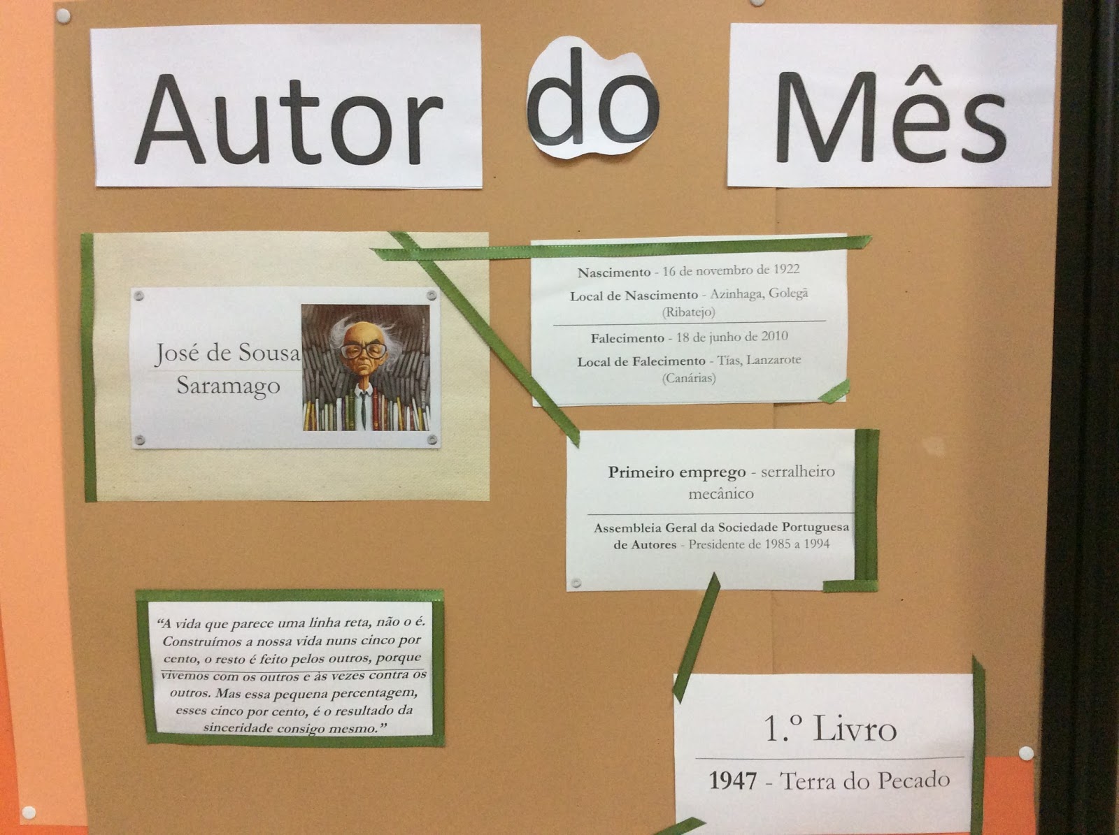 Os escritores do mês de outubro já se encontram nas nossas Bibliotecas Escolares. Este mês vamos dar a conhecer os livros dos escritores António Mota (Biblioteca Escolar de Campia) e José Saramago (Escola Secundária de Vouzela).